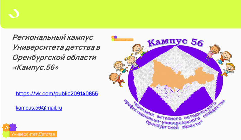 Итогом проведения школы стало объявление о начале работы регионального кампуса Оренбургской школы Университета детства «Кампус.56» https://vk.com/public209140855. Все участники конференции получили именные сертификаты от Университета детства.