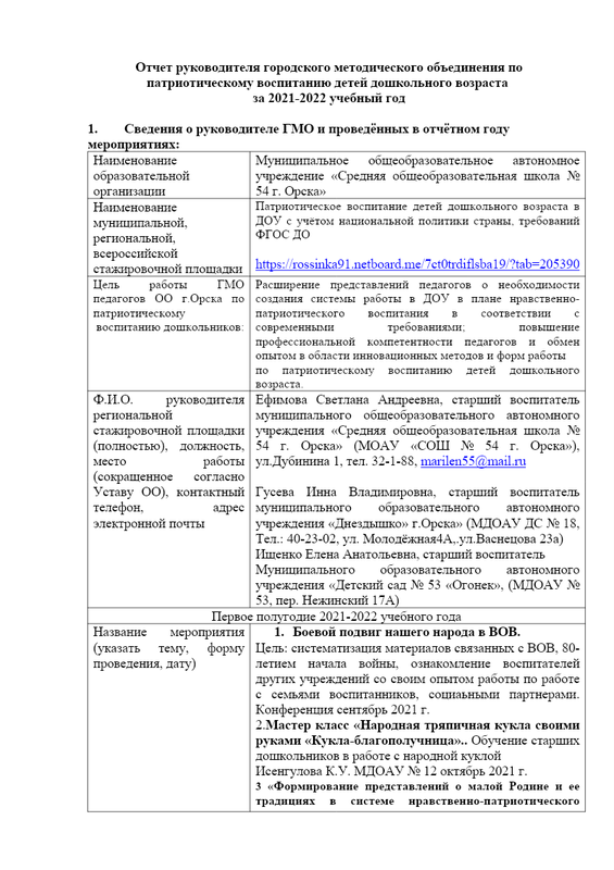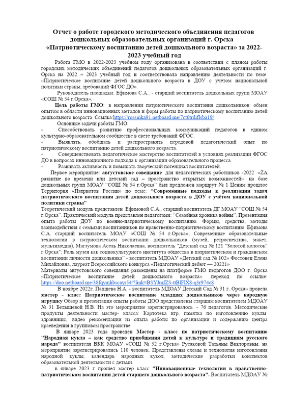 Отчет о работе городского методического объединения педагогов по патриотическому воспитанию детей дошкольного возраста за 22-23 год
