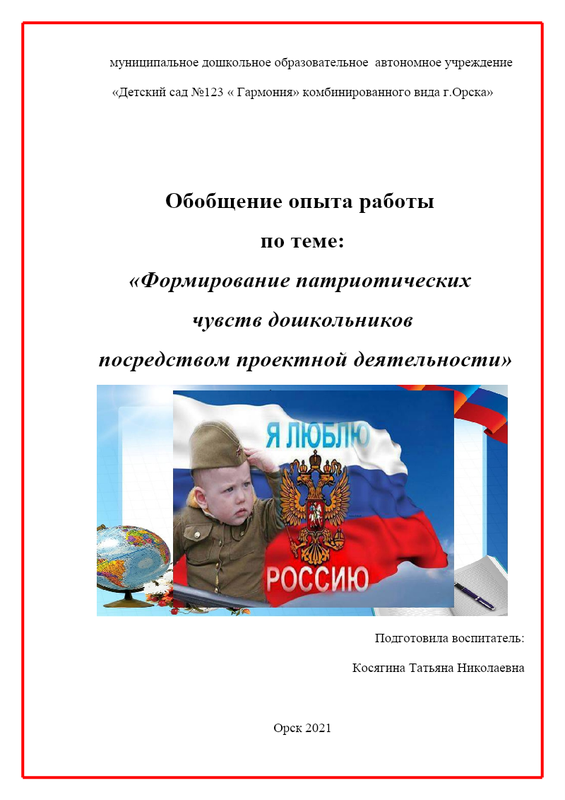 по теме: «Формирование патриотических чувств дошкольников посредством проектной деятельности»