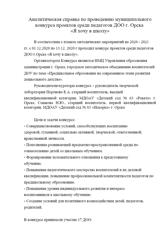 Аналитическая справка по проведению муниципального конкурса проектов среди педагогов ДОО г. Орска