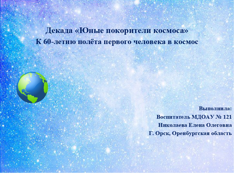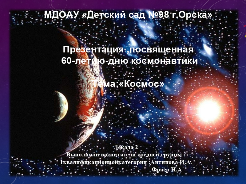 Прикрепите подготовленные презентации, посвященные 60-летию – Дню Космонавтики в данный раздел - 2 день декады .