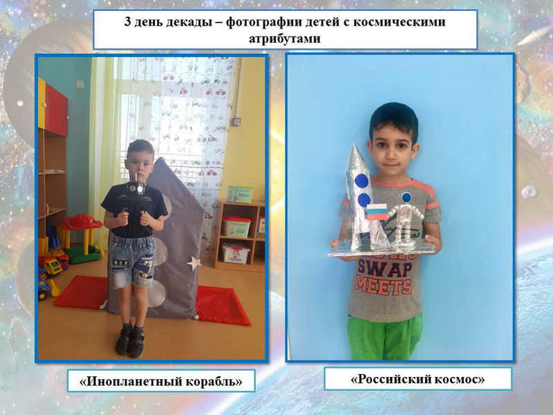 Размещение фотографий детей с космическими атрибутами в данном разделе - 3 день декады.