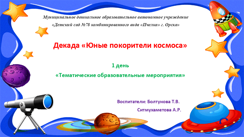 · 1 день 01.04.2021 г. – проведение тематических образовательных мероприятий с детьми дошкольного возраста.