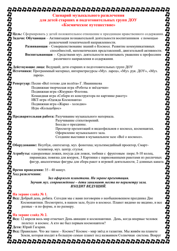 Беседа «Наши космонавты» «Читаем о космосе»: загадки о космосе; Е. П. Левитан «Малышам о звездах и планетах»; Н. Носов «Незнайка на луне»; стихи А. Хайт «По порядку все планеты …»; «На луне жил звездочет»; Р. Алдонина «Комета»; Г. Сапгир «Раскинув свой огнистый хвост…»; К. Булычев. «Тайна третьей планеты»; В. Бороздин «Первый в космосе»; чтение энциклопедической литературы посвящённой полётам в космос, космической технике, космическим телам «Космос», «Астрономия и космос», «Астрономия для дошкольников». | Информация о подвиге советских и российских космонавтов https://infodoo.ru/prezentatsiya-detyam-o-lyotchikah-kosmonavtah |