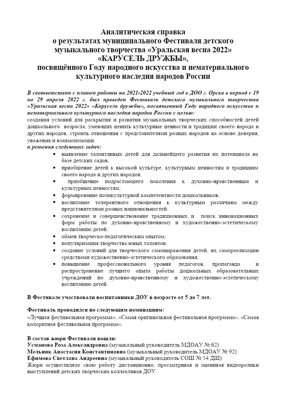 Аналитическая Справка Фестиваля Карусель Дружбы