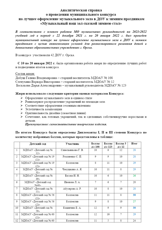 Аналитическая Справка Конкурса Офоромление Муз.Зала Зима