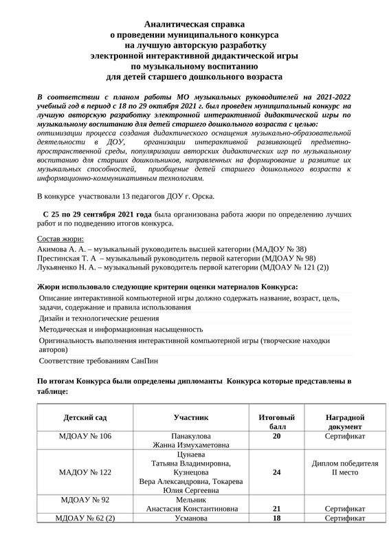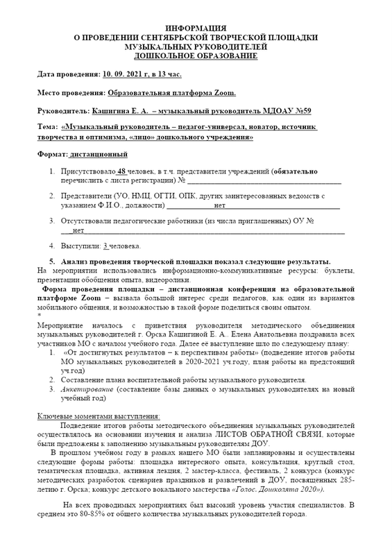 Аналитическая Справка Сентябринка Муз.Рук. 2021