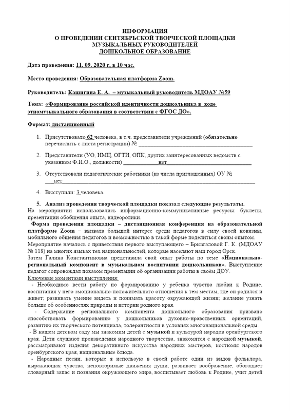 Аналитическая Справка Сентябринка Муз.Рук. 2020