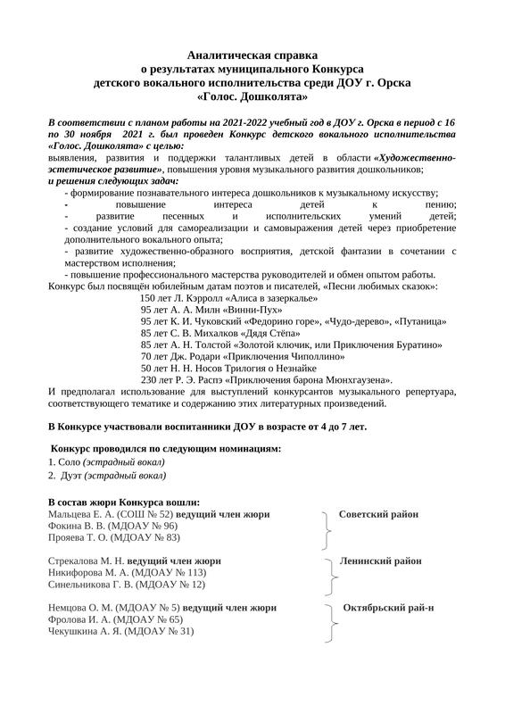 Аналитическая Справка Голос. Дошколята 2021