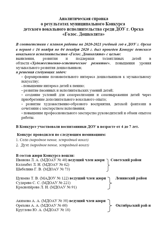 Аналитическая Справка Голос. Дошколята 2020