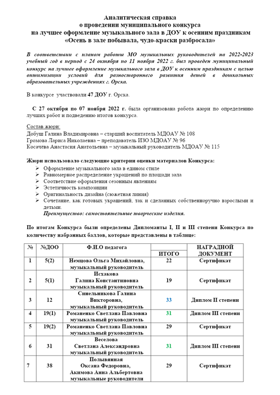 Аналитическая Справка Конкурса Офоромление Муз.Зала Осень
