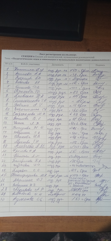 Лист регистрации участников секции
