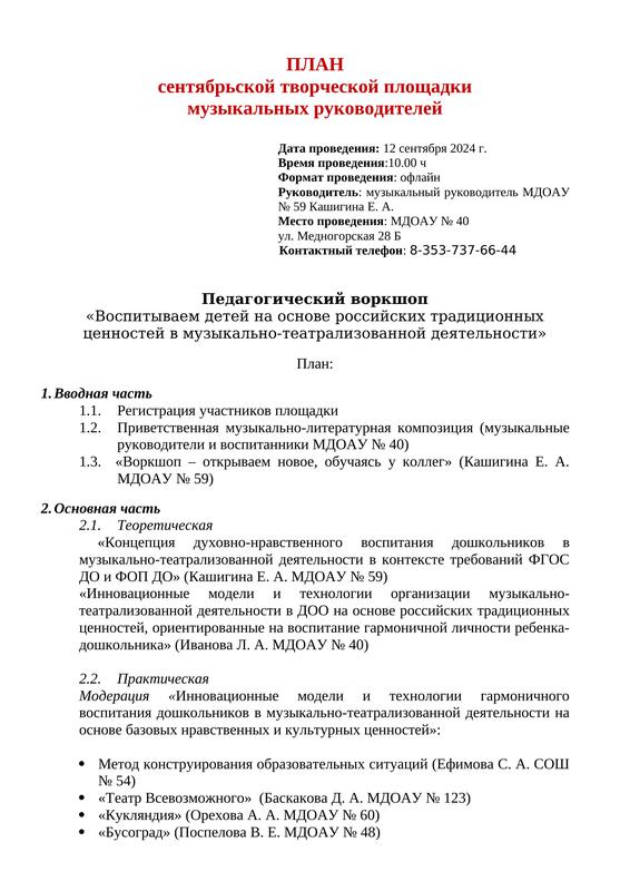 • Творческая площадка март 2024 г. МДОАУ № 59