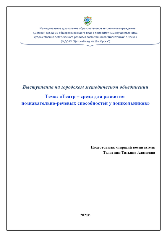 1. Телятник Т.А. МДОАУ 19 Выступление