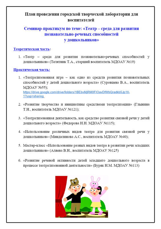 Видео материалы "Театр - среда для развития познавательно-речевых способностей у дошкольников" - Google Drive