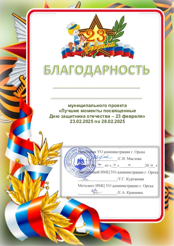 Благодарность 23 Февраля
