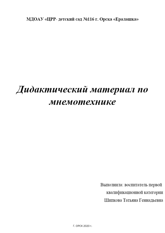 Дидактический Материал По Мнемотехнике Шипковой Т.Г. 2020 Г.