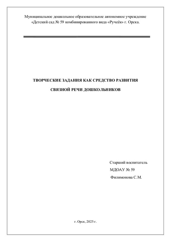 Творческие задания как средство развития связной речи дошкольников