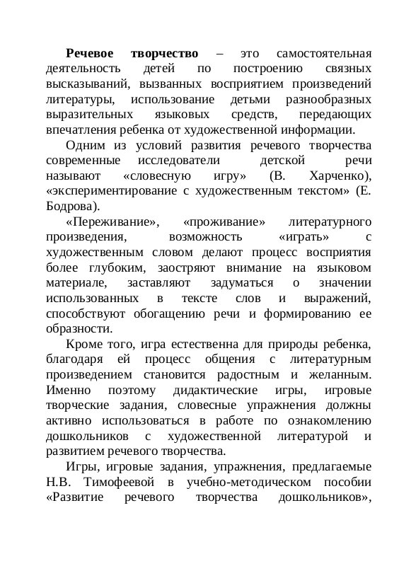 Картотека дидактических игр и упражнений на развитие речевого творчества