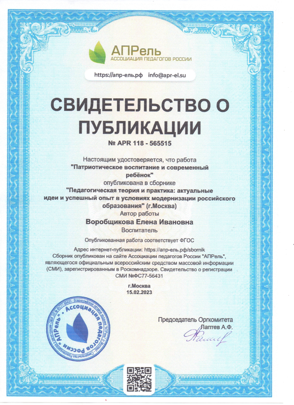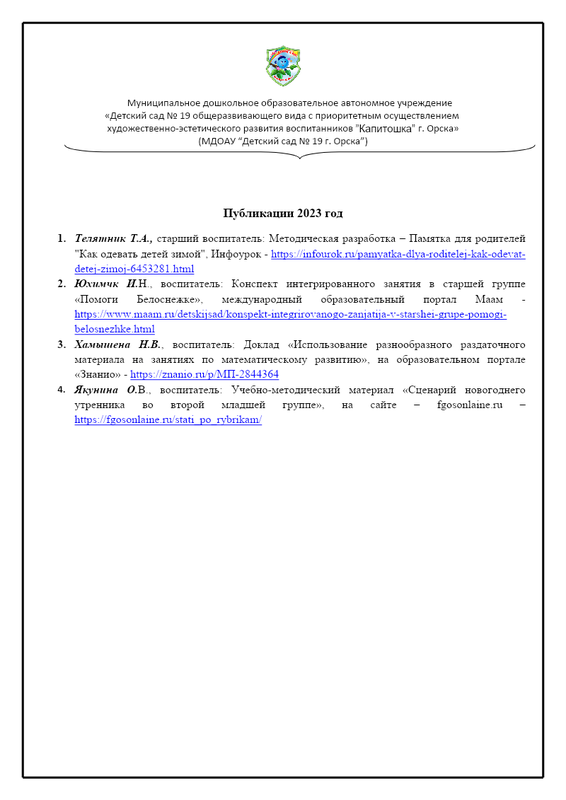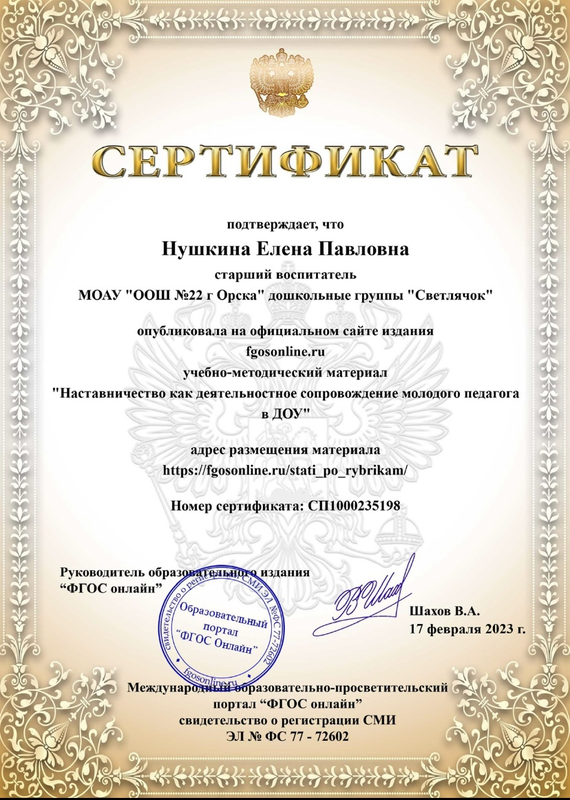 Старший воспитатель : Нушкина Елена Павловна