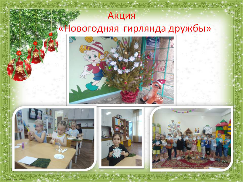 -акция «Новогодняя гирлянда дружбы» предполагает совместное изготовление детьми дошкольного возраста, педагогами дошкольных образовательных учреждений, родителями (законными представителями) воспитанников фрагментов новогодней гирлянды;