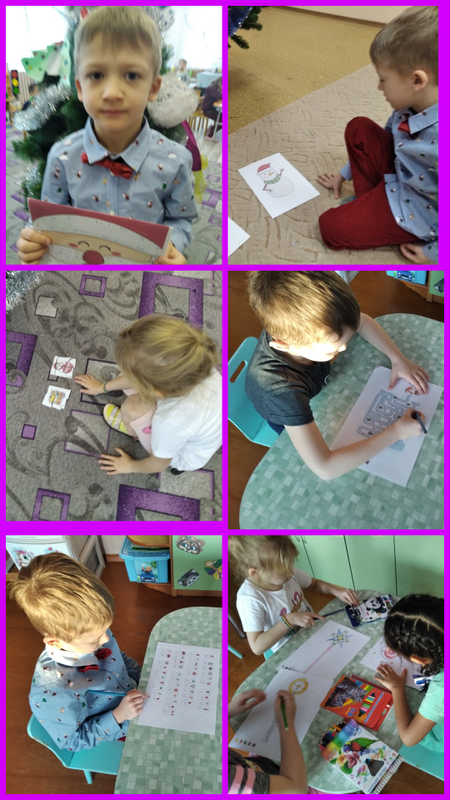 Вырежьте одежду для снеговиков, пазлы, следы, метку-сапожок.