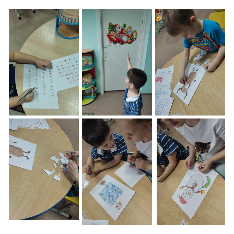 Задания разложите по конвертам и поместите их в нужные места. Первый конверт — открытка-письмо, снеговики, одежда. Второй конверт — карточка с посланием, шифр. Третий конверт — карточка с посланием. Четвёртый конверт — карточка с заданием, Шуршик, пазлы. Пятый конверт — карточка с заданием, лабиринт. Шестой конверт — волшебные палочки, задание.