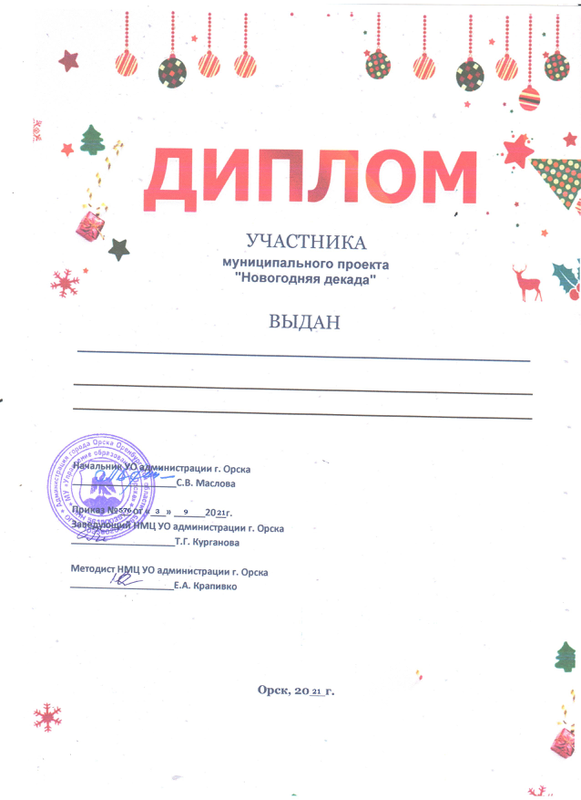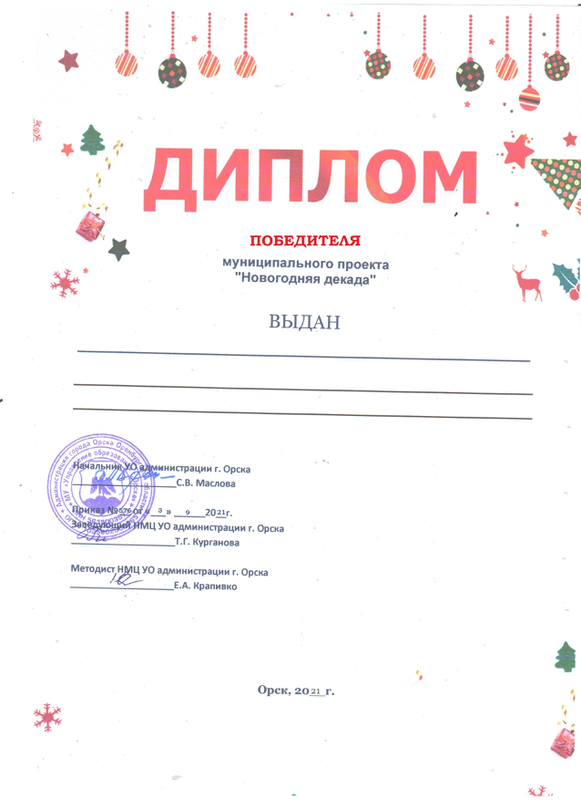 Диплом ПОБЕДИТЕЛЯ (тем участникам которые выполнили все задания декады)