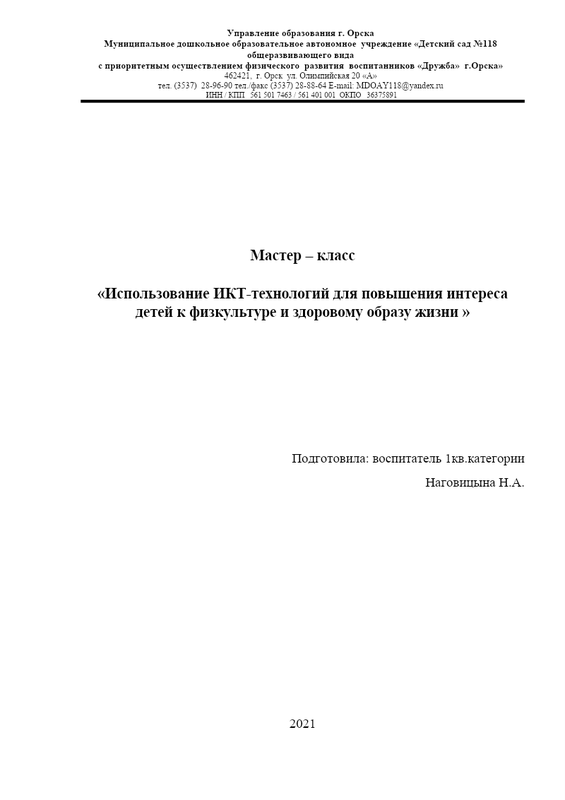 • Мастер-класс МДОАУ № 118 Наговицына Н.А.