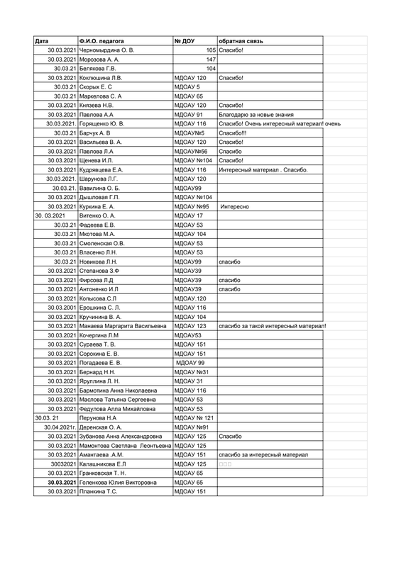 Лист регистрации и обратной связи мастер -класс Наговицыной Н.А. 30.03.2021