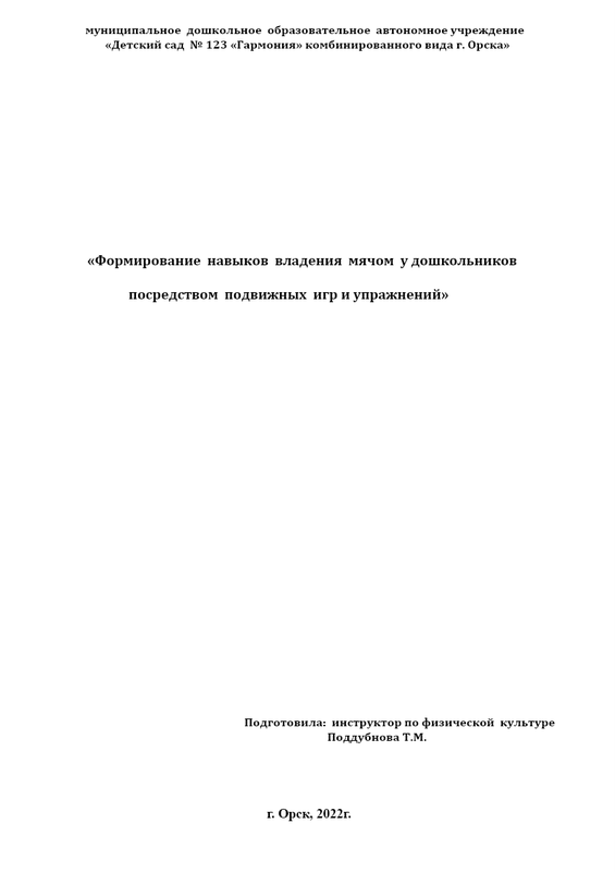 Доклад Формирование Навыков Владения Мячом