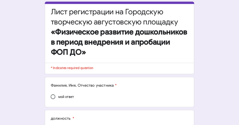 Лист регистрации на Городскую творческую августовскую площадку «Физическое развитие дошкольников в период внедрения и апробации ФОП ДО»