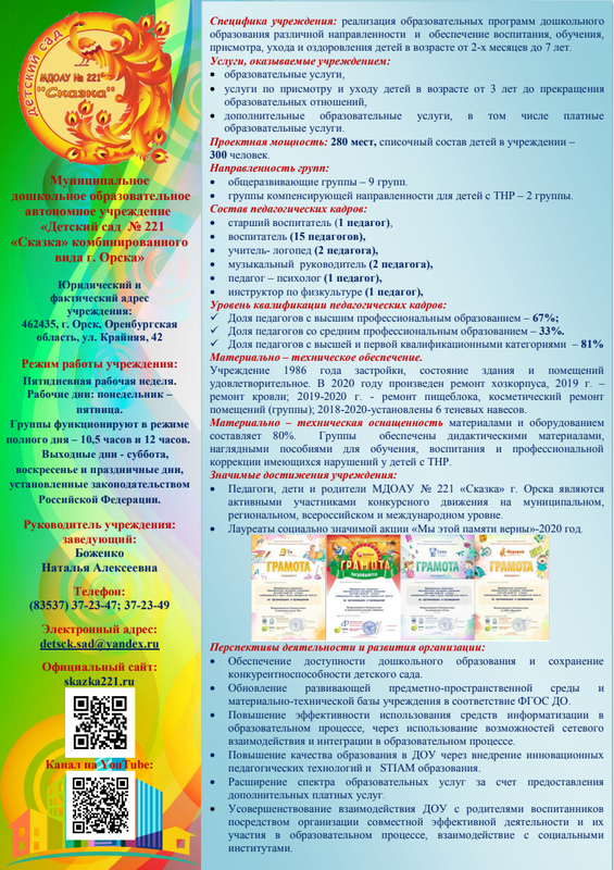 Визитка Мдоау № 221 ,,Сказка,,