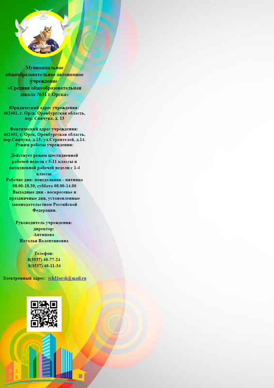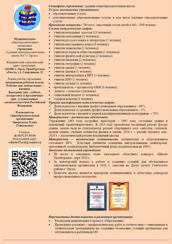 Визитка Моау Сош №15 Г.Орскка