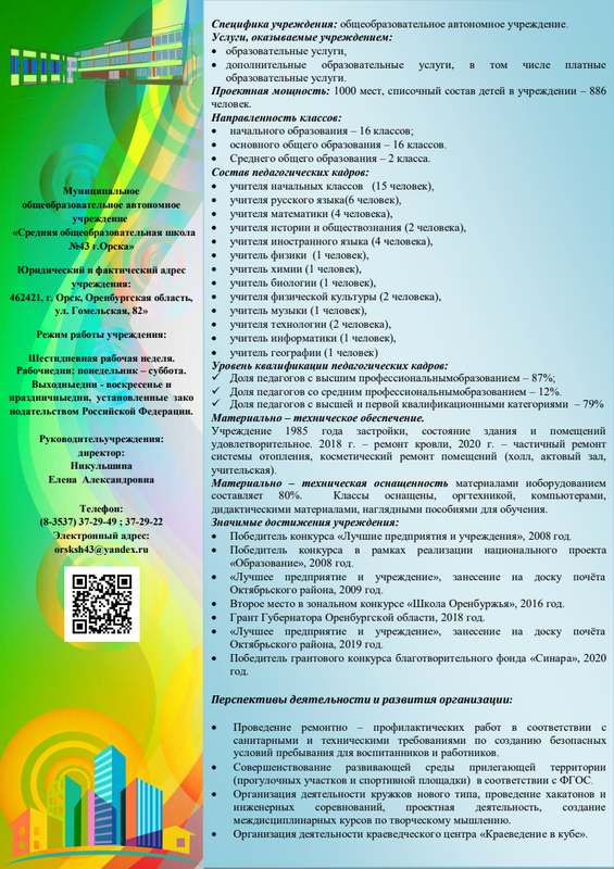 Визитка МАОУ "СОШ п.Мирный г.Орска"