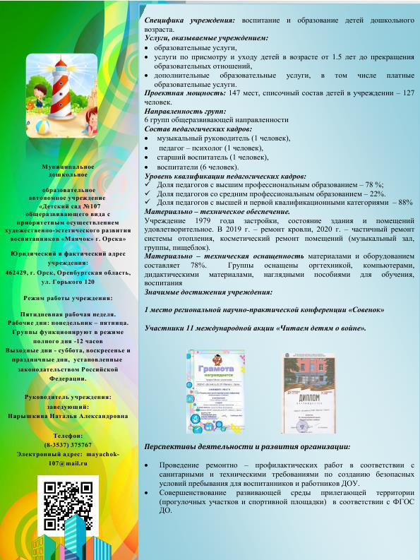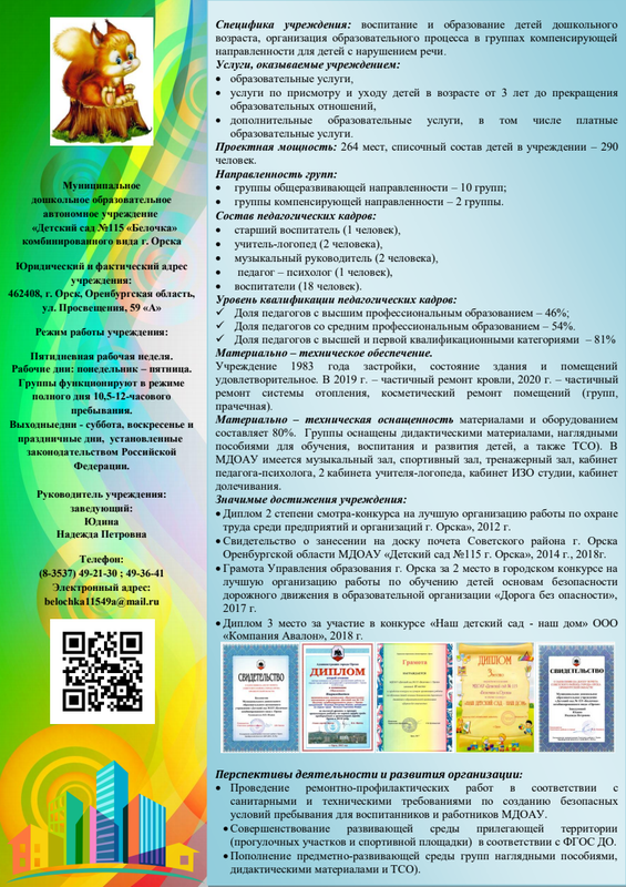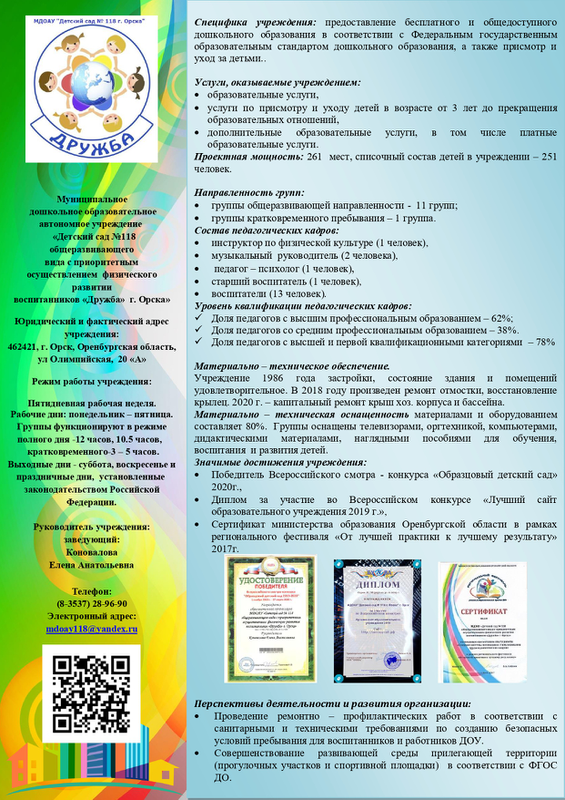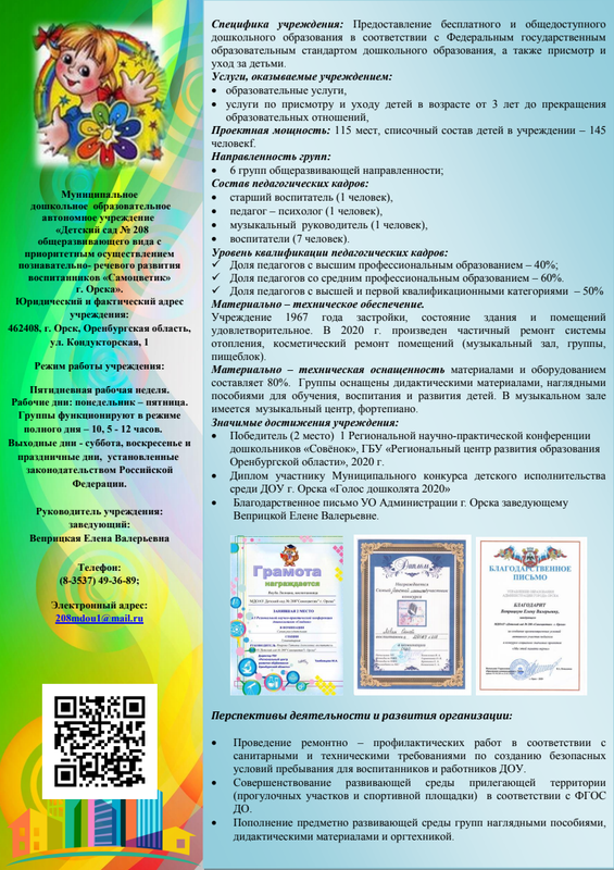 Визитка Мдоау № 208 Орск 2020 Год