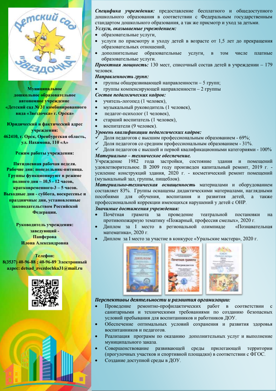 МДОАУ "Детский сад № 31 комбинированного вида "Звездочка" г. Орска"